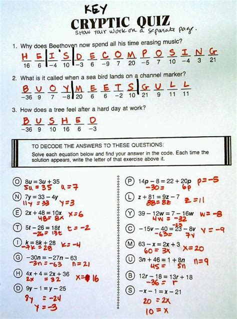 Download Cryptic Quiz Worksheet Answers Math Kindle Editon