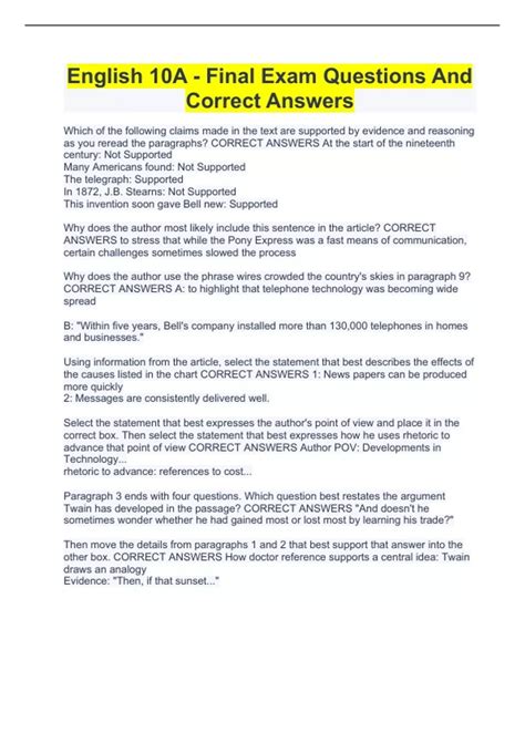 Read E2020 Answers English Language Arts 10a Reader